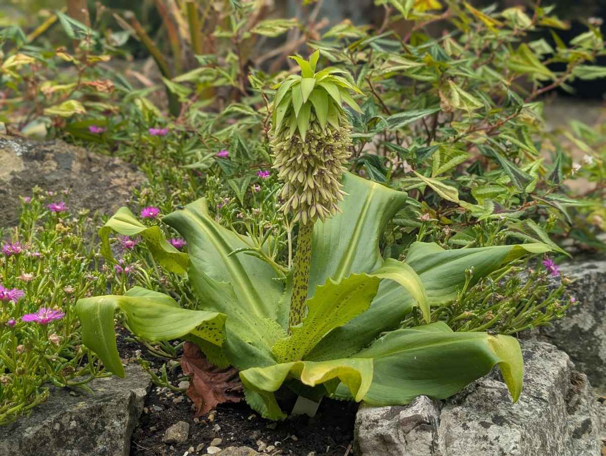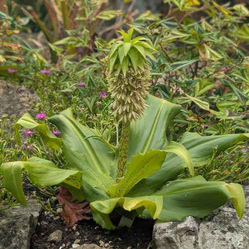 Eucomis, commonly known as pineapple lily, is a genus of flowering plants in the family Asparagaceae, native to southern Africa, notable for their column of flowers that resemble a pineapple.
