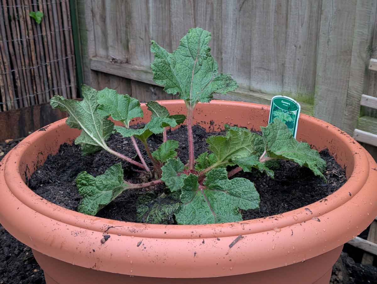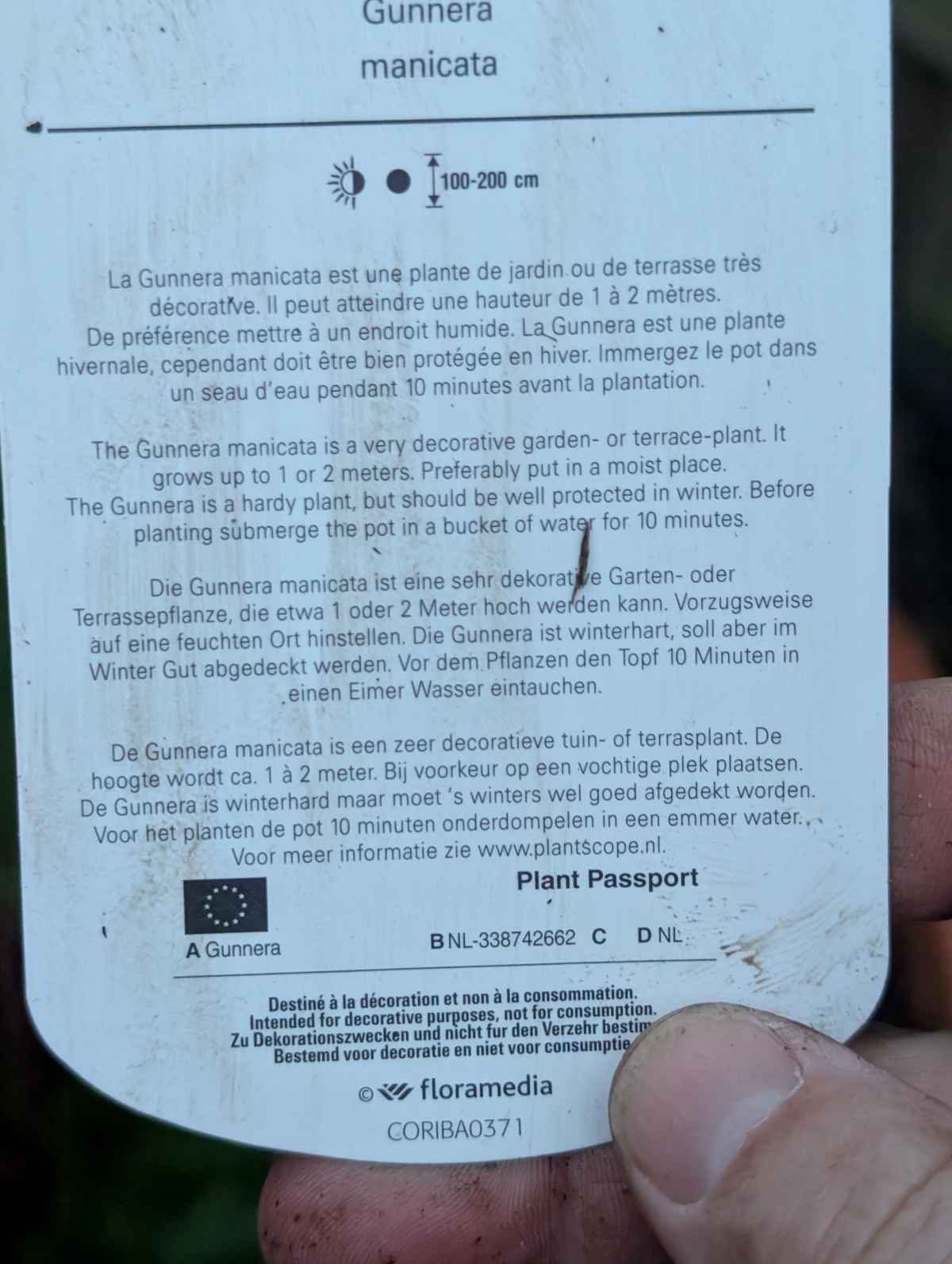 Also known as giant rhubarb, a large, dramatic plant with enormous leaves.